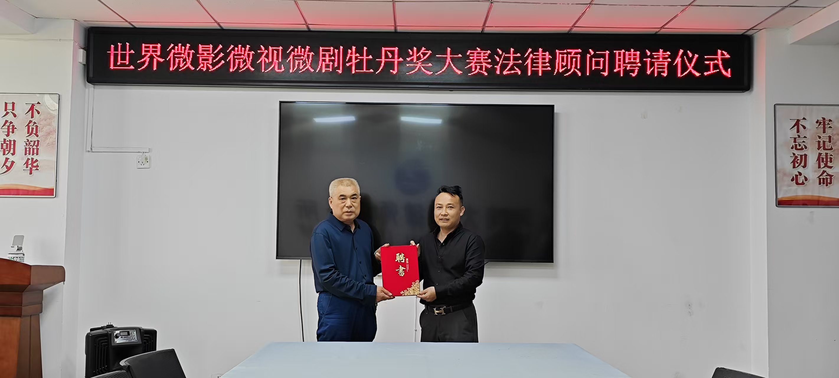 2025 年 4 月 29 日,《世界微影微视微剧牡丹奖》大赛组委会在大进律师事务所举行了一场庄重而意义非凡的法律顾问授聘仪式。此次仪式标志着大赛在规范化、专业化发展道路上迈出了坚实一步,为大赛的顺利推进提供了有力的法律保障。